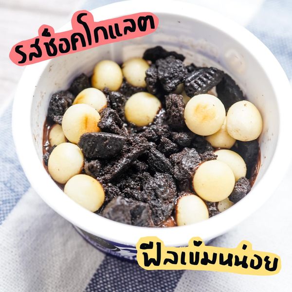 อันนี้จะเข้มกว่าตัวรสนมหน่อย ให้ฟีลขมขึ้นอีกนิด มีกลิ่นช๊อกโกแลตอีกหน่อย ตัวช๊อกโกแลตมี texture เยิ้มๆหน่อย เจอกะบิสกิตที่เป็นช๊อกโกแลตด้วยยิ่งโคตรเต็มรสช๊อกโกแลต กรุบๆกรอบๆขมอีกนิด