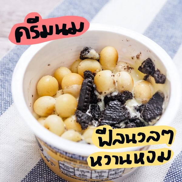 อันนี้ฟีลแบบหวานนวล หอมนมๆหน่อยย ใครชอบอะไรนวลๆ แนะนำอันนี้เลย เจอกับตัวบิสกิตแล้วกรุบกรอบ หวานอร่อยสุดๆ แช่เย็นยิ่งอร่อยมาก งื้อๆๆๆ
