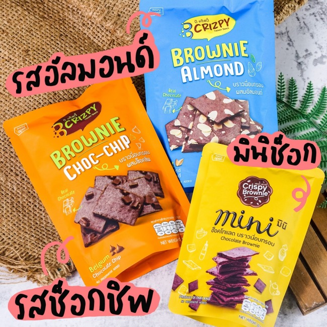 พูดถึงขนมบราวนี่อบกรอบต้องนี่เลยจ้าาาาาาา แบรนด์บีคริสปี้ แบรนด์นี้เขามีให้เลือกถึง2รสชาติคือ รสอัลมอนด์และช็อกชิพ เท่านี้ไม่พอเขายังมีแบบไซส์มินิอีกด้วยน้าาาาาาาาา ตัวบราวนี่อัลมอนด์ (45.-) อัลมอนด์สไลต์เขานำเข้าจากอเมริกา ตัวบราวนี่จะกรอบมากกกก ไม่ผสมมาการีนเลยนะ พรีเมียมมากเว่อร์ ตัวบราวนี่ช็อกชิพ (45.-) มีช็อกชังค์จากเบลเยียมท็อปบนบราวนี่เน้นๆ เจ้มจ้นมากกกกกกกก คริสปี้บราวนี่มินิช็อกโกแลต (28.-) แผ่นจิ๋วพอดีคำ ช็อกเจ้มๆๆๆๆๆเต็มๆแผ่น ไม่ผสมมาการีน หวานน้อยโด้ยยยย