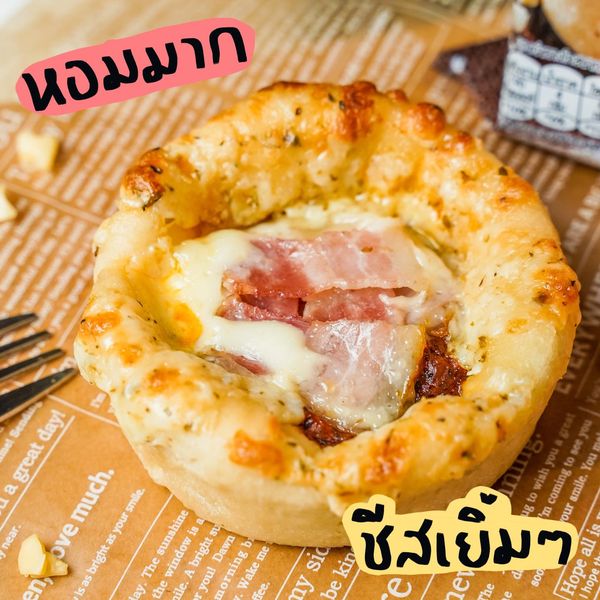 เแกะมาคือได้กลิ่น กลิ่นชีสสหอมมากกกกกก อะต่อมาว่าด้วยเรื่องของหน้าตา ตามชื่อเลยเบรดคัพ มาทรงถ้วยแต่เป็นขนมปังและขอบชีส อันนี้กรอบๆ ดูดีน่ากินอร่อยน่ารัก