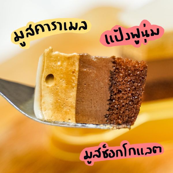 ในส่วนของรสชาตินั้นนนน น้องแบ่งเป็น 3 เลเยอร์ตามที่เห็น และมีซอสคาราเมลราดอีกเล็กน้อย 2 เลเยอร์บนเป็นมูส เนื้อมันแบบเนาะแนะๆ ละลายในปาก แบบนวลไปกับลิ้นมันดีมากจีงๆ ชั้นคาราเมลก็หวานหอมมม ชั้นช๊อกโกแลตมีความหวานและขมเล็กๆของช๊อกโกแลต จบท้ายคำด้วยแป้งนุ่มๆฟูๆ เด้งๆ รสขาติซับซ้อนนิดๆ ฉ่ำอร่อยสมรารา คือดียยย์ ชอบมากแง