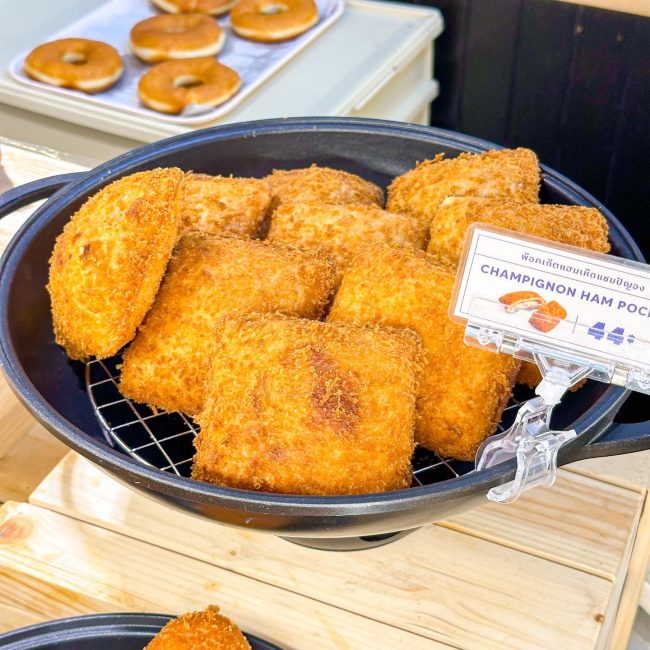 อันนี้คือชวนทุกคนมาลองเลยเพราะน้องเริ่ดจริงงง เป็นขนมปังพ็อกเก็ตทอด ข้างในมีซอสครีมมี่ ๆ ฟีลคาโบนาร่าเลยยย ยังไม่หมดแค่นั้นมีแฮมชิ้นโต ๆ กับเห็ดแชมปิญองอีกแน่น ๆ ด้วยยยฉ่ำมากก มีความกรอบนอกนุ่มในรสชาติคือกลมกล่อมมากกก กินร้อน ๆ ยิ่งอร่อยยยเพลิดสุด ๆ แปปเดียวหมดดดดซื้อมาหลาย ๆ ชิ้นได้เลย!
