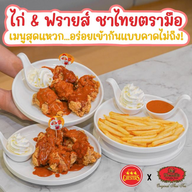 ช่วงนี้กระแสชาไทยฟีเวอร์เกิ๊นนนนนน!! ล่าสุดเชสเตอร์ก็เอากับเค้าด้วย ออก 2 เมนูใหม่สุดแหวก “ไก่ & ฟรายส์ ชาไทยตรามือ” 🍗🍟 อร่อยปังแบบคาดไม่ถึง! 🤩