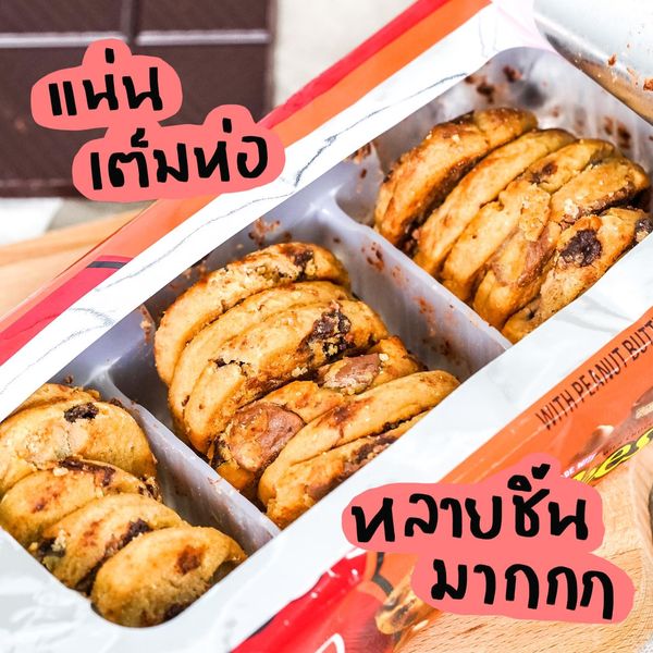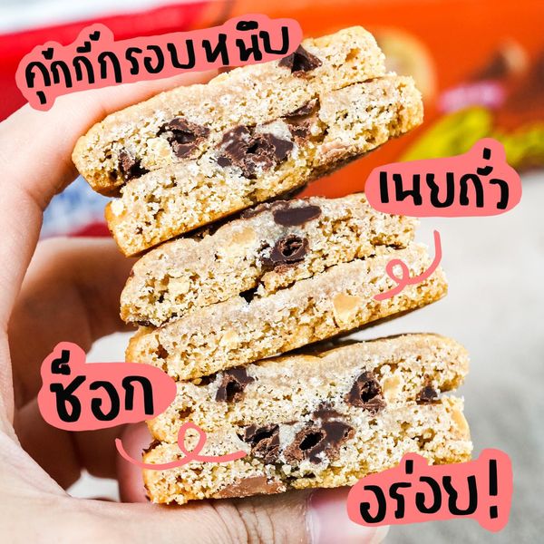 แล้วรสชาตินะะะะ โหหหหหหหหหหหหหเจ้มจ้นม้ากกกกกกก มันแบบดือออออออ คุ้กกี้ที่อร่อยเป็นทุนเดิมอยู่แล้วรวมกับช็อกชิ้นใหญ่แล้วยังมีเนยถั่วอีกเข้ากันดีมากกกก อร่อยนัววววว มันเริ่ดมากแม่! ถุงใหญ่ไซส์แฟมมิลี่มากกกกก จุใจสุดดดด