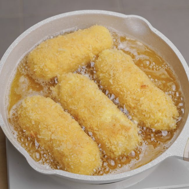 -นำมอสซาเรลล่าชีสมาพันใส่กรอก แล้วนำแผ่นแป้งเวียดนามแช่น้ำ นำมาห่อไส้กรอก จากนั้นนำไปชุบไข่แป้งทอดกรอบ แล้วชุบไข่และเกล็ดขนมปัง 2รอบ จากนั้นตั้งกระทะไฟอ่อนแล้วทอดจนเหลืองกรอบ แค่นี้ก็เสร็จแล้ว