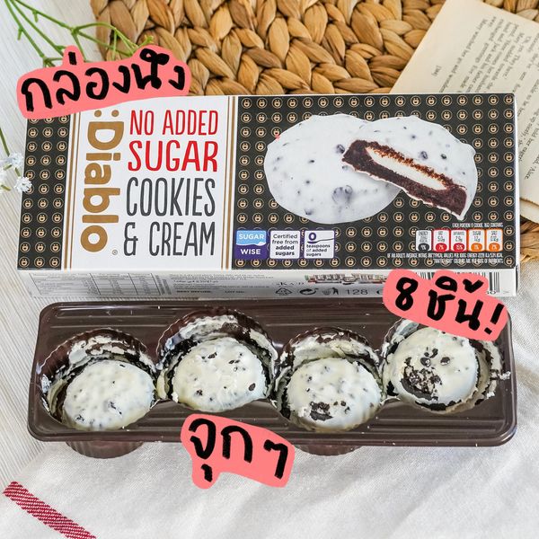 🍪🥛 คุกกี้อันนี้ก็คืออยี่ห้อ Diablo รุ่น No Added Sugar White Cookies & Cream เป็นขนมที่ทำมาสำหรับคนที่รักสุขภาพแบบนิดนึงงงงคือไม่มีน้ำตาลตรงๆ แต่ก็ยังแอบหวานนิดหน่อยจากน้ำตาลตั่งต่างของส่วนผสมอื่นแทน รสชาติอร่อยเน่อออออ หวาน หอม ช็อคเข้มข้นจนนิพพานน แต่ย้ำอีกทีน้องเค้าไม่มีน้ำตาลนาจาาาาา ก็คือซื้อน้องไปกินเล่น ยามหิว ยามโหยย ช่วยได้เด้อออ อร่อยแบบไม่รู้สึกผิดใดใด