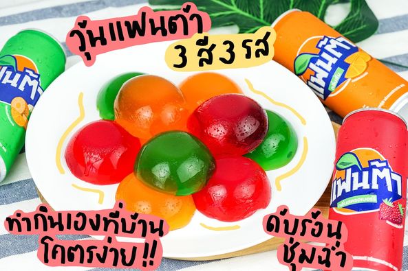 นี่เราไปเจอวิธีทำวุ้นเด้งดึ๋งมาาาาาา สูตรมันง่ายม้ากกกกกใช้ส่วนผสมแค่ไม่กี่อย่างเองงง ช่วงนี้อยากได้อะไรซ่าๆหวานๆชื่นใจๆก็เลยเอาส่วนผสมเป็นแฟนต้าเลยจ้า เอามาทั้ง3สี3รสจุกๆๆๆๆ เอาให้อร่อยซ่าหนำใจไปเลยยยย ไปลองทำกันเลยยยย