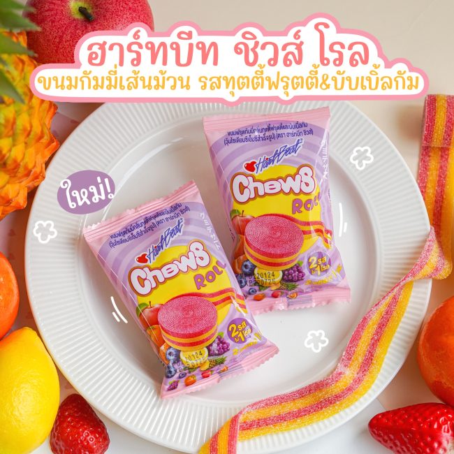 ฮาร์ทบีทออกใหม่! ขนมกัมมี่เส้นม้วนหนึบบบ แสนสนุกก รสทุตตี้ฟรุตตี้และบับเบิ้ลกัม อร่อยได้ถึง 2 รสใน 1 ชิ้น💗🍓🍊🍋🍍🍬