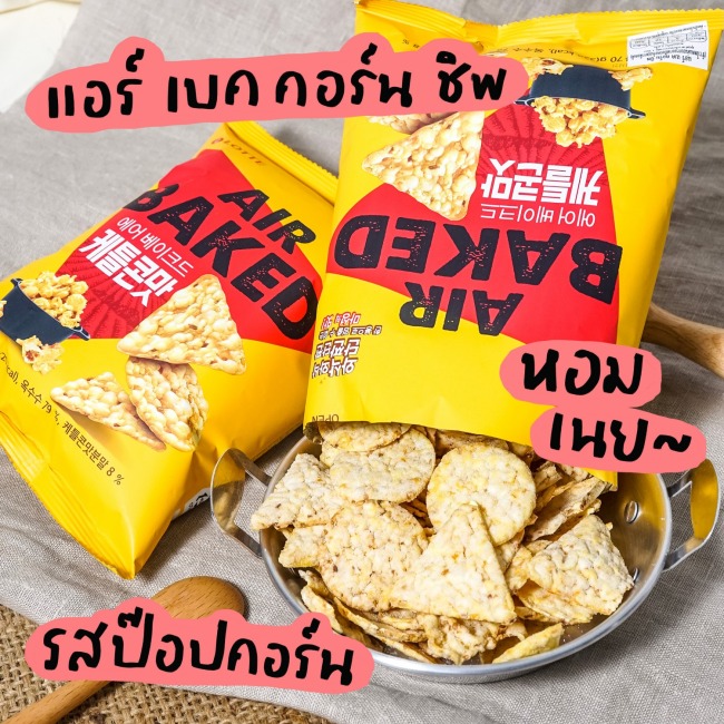 Lotte Air Baked ขนมจากล็อตเต้เกาหลี ขนมตัวนี้เป็นตัวที่คนในโซเชียลพูดถึงกันเยอะม้ากกกกกกกก เพราะมีเจนนี่แบล็คพิ้งค์เป็นพรีเซนเตอร์ด้วยจ้าาาาาและตัวขนมก็มีความหอม กรอบ อร่อยและมีคุณภาพอีกด้วย เพราะเขาใช้เตาอบพิเศษโดยใช้ความร้อนจากลมร้อนในการอบ ทำให้ไม่มีความมันเยิ้ม ไม่มีน้ำมัน และปริมาณไขมันจึงต่ำกว่าขนมปกติถึง 60% หูยยยยยยมันดีมาก คนที่กำลังลดน้ำหนักแต่ยังอยากของกรุบกรอบก็คือกินได้หายห่วงเลยจ้าาาา Air Baked มีออกมาทั้งหมด 3 รสชาติก็คือ รสออริจินอล ซาวร์ออเนี่ยน และรสป๊อปคอร์นจ้าาาา