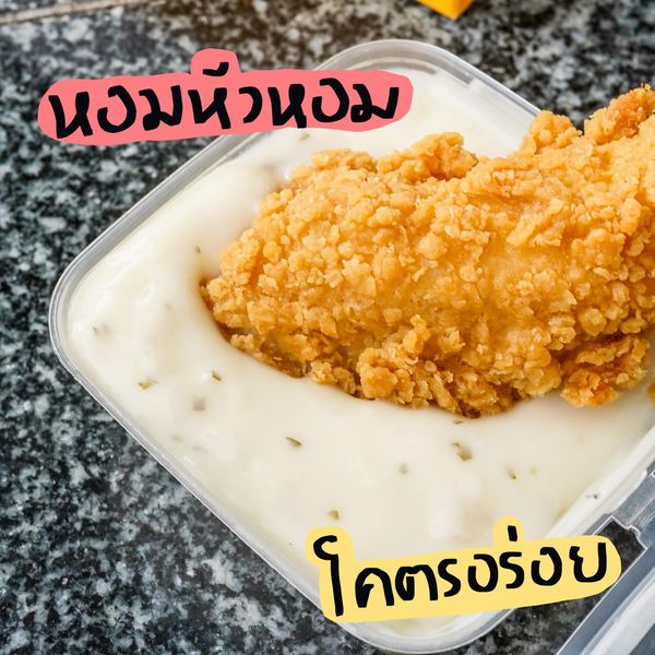 เปิดกล่องมามีไก่ทอดร้อนๆ กับซอสหัวหอมที่หอมสุดดดดด หอมแบบหัวหอมนวลๆ ว่าแล้วลองจิ้มกินซะหน่อยยยยยยย โอโหหหห โคตรฟินนนนน ไก่กรอบๆร้อนๆ กินคู่กับซอสหัวหอมฉ่ำๆ ที่มีกลิ่นหอมเฉพาะตัวมีความหวานนิดๆเค็มหน่อยๆ พร้อม texture ของหัวหอม โอยฟินนน นัววว อร่อยดูดนิ้วววว ฟีลมันเกาหลีมากกกกกกก