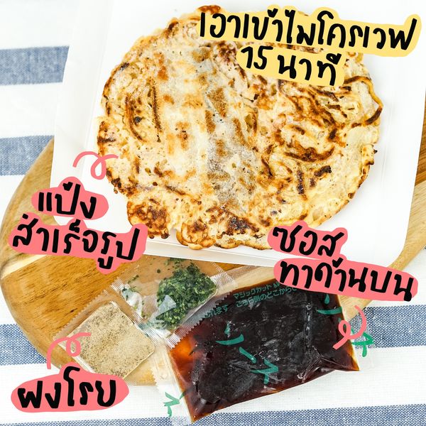 ส่วนใหญ่โอโคโนมิยากิที่เคยกินมันจะเป็นใส่ผักต่างๆ ใช่มั้ยยยยย แต่อันนี้เราไปเจอที่เป็นไส้ยากิโซบะมาเด้ออออออออออออ สุดยอดคอมบิเนชั่นที่อ่านเจอบ่อยๆ เราเลยคว้ามาอย่างไวววว และมากไปกว่านั้นน้องแค่แกะซอง เข้าเวฟ จบปิ้งพร้อมกินจ้าาาาาา ง่ายแม้กกกกก เขาจะมีให้ซอสราดข้างบนมาด้วย พร้อมปลาย่างและผงสาหร่าย ครบเครื่องเลยจ้าาาาาา
