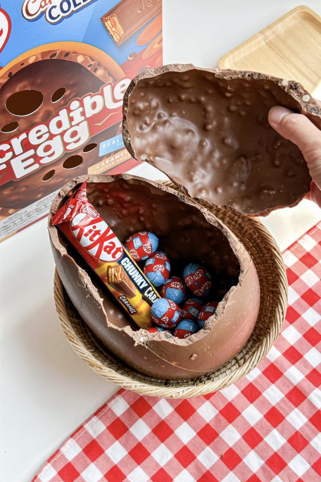 มีใครให้ใหญ่กว่านี้มั้ย 😂😂 ไข่อีสเตอร์ที่จริงใจสุดๆ ใหญ่โฮ่งไม่ไหวว 🥚🐰หอมคาราเมลมากๆๆ ช็อกโกแลตผสมคุกกี้ชิ้นเล็กๆมีความคริสปี้ขั้นสุด หวานหอมมากๆ แบ่งกันกินยังไงให้หมดก่อน 😂😂 เค้าทำออกมาดีมากนะตัวช็อกโกแลตอร่อยเกมือนเดิม เพิ่มเติมคือหอมคาราเมลและมีคุกกี้ผสมให้เคี้ยวกรุบๆ อีกกหัวมากินเล่นได้เพลินๆเลย