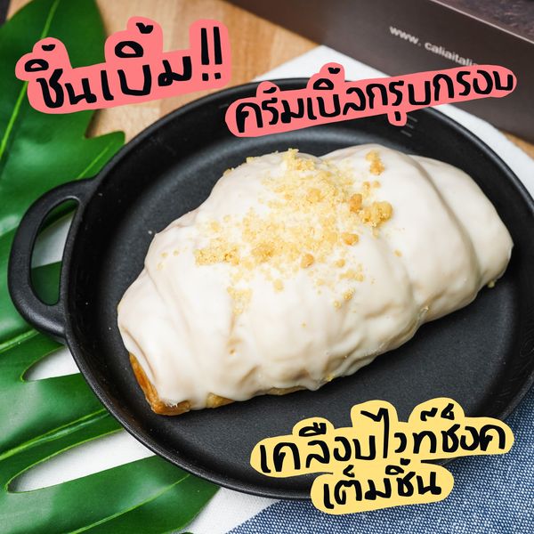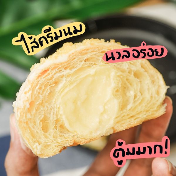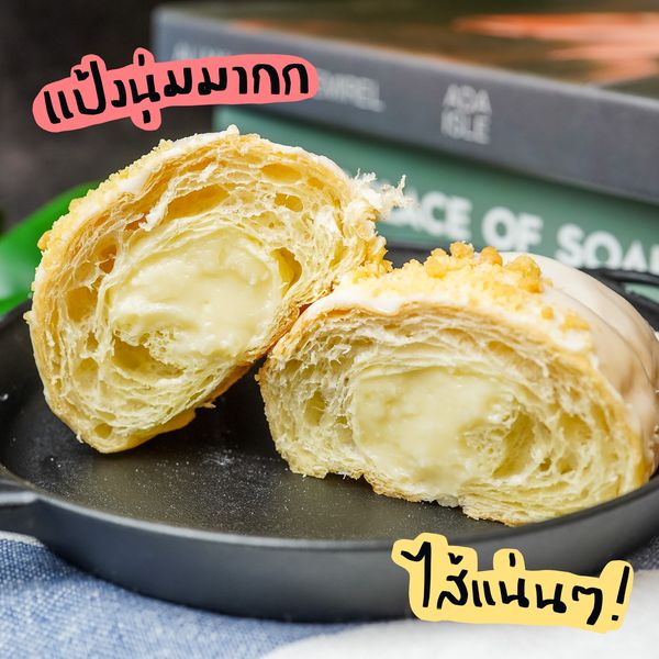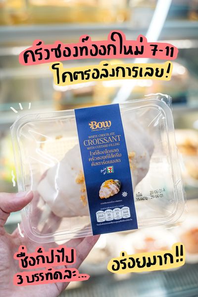 มันคงเป็นความรักกกกกก เห็นสิ่งนี้ในเซเว่นสะดุดตามาก แบบสง่างามดั่งหงส์ขาวสะอาดผุดผ่องอยู่ในตู้ หยิบขึ้นมาอ่านชื่อ สูดหายใจลึกๆ ก่อนพูดชื่อ ยาวมากกกก “ไวท์ช็อกโกแลตครัวซองท์ไส้ครีมคัสตาร์ดนมสดดดดดด” แต่ใดๆ คือน้องชิ้นเบิ้มมาก แถมราคาไม่แรง ว่าแล้วต้องหยิบไปลอง